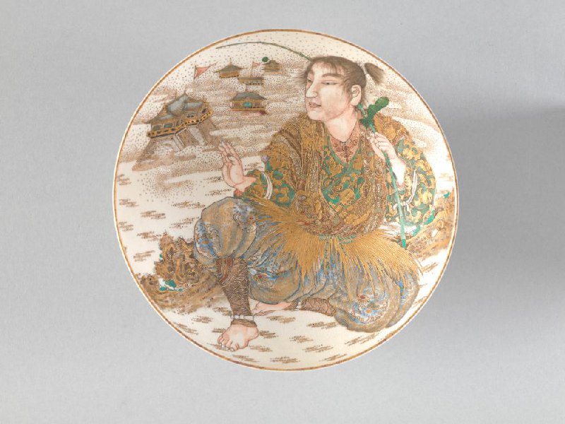 Satsuma ware with overglaze and gold decorations, 6 cm x 17.6 cm