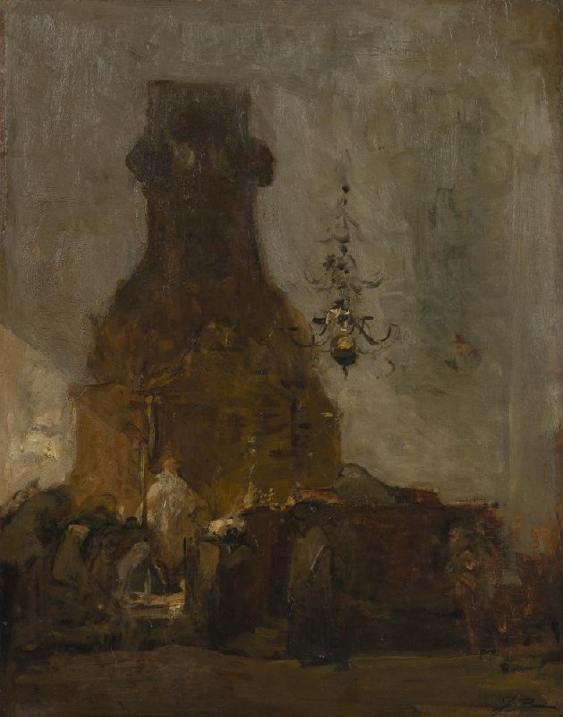 Bosboom gebruikte hier maar een paar losse verfstreken voor het binnenvallende zonlicht. Het licht wordt weerspiegeld in de kroonluchter. Mesdag kocht deze olieverfschets kort na Bosbooms dood uit zijn nalatenschap, samen met acht andere onvoltooide schilderijen en 86 tekeningen.