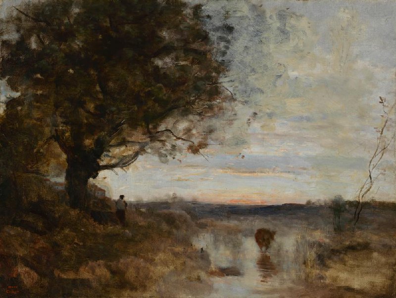 - 31 mei- 4 juni 1875 veiling Parijs, Hôtel Drouot (Tableaux, Études, Esquisses, Dessins et Eaux-Fortes par Corot (…) vente par suite du décés de Corot), lot 197 (Paysage composé, effet de soleil levant), gekocht door A. Diot voor FRF 805; voor 1 oktober 1885 verworven door Hendrik Willem Mesdag, Den Haag; 14 mei 1903 collectie Museum Mesdag gedoneerd door Hendrik Willem Mesdag en Sientje Mesdag-van Houten aan de Staat der Nederlanden; vanaf 1 augustus 1903 Rijksmuseum H.W. Mesdag, Den Haag; tussen 1934 en 1990 in beheer van het Mauritshuis, Den Haag; vanaf 1 april 1990 in beheer van het Rijksmuseum Vincent van Gogh, Amsterdam; vanaf 1 juli 1994 Museum Mesdag, in beheer van Stichting Van Gogh Museum, Amsterdam, vanaf 2011 onder de naam De Mesdag Collectie.